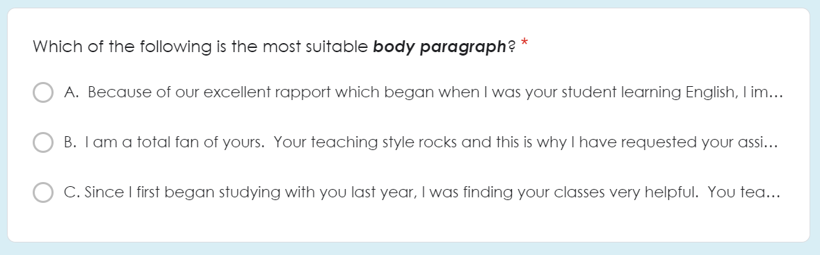 IMPORTANT: As you read the writing excerpts, evaluate them in terms of the four (4) IELTS criteria (this will be shown on exam):